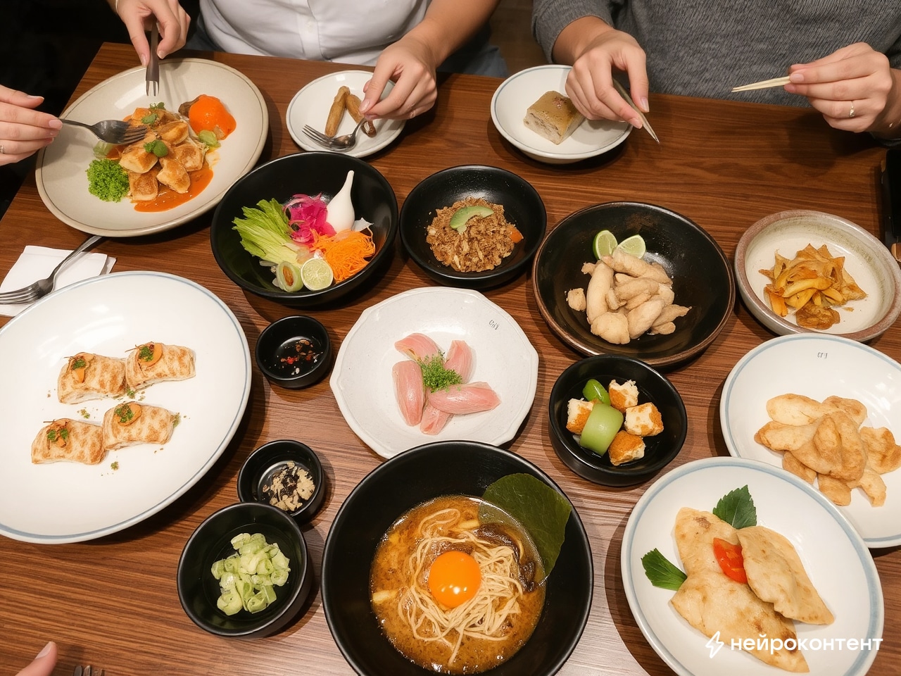 Пример текста на тему: "Ингридиенты. готовая продукция японской кухни" от нейросети