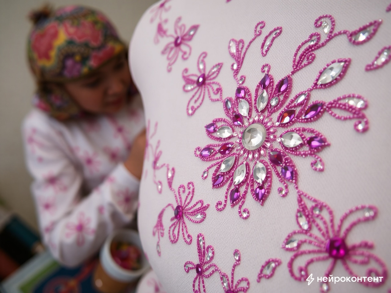 Пример текста на тему: "Вышивка из страз" от нейросети