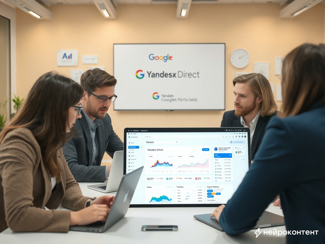 Пример текста на тему: "Настройка Яндекс.Директ + Google.Ads (Adwords)" от нейросети
